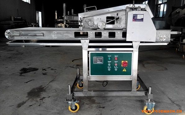 SXYY600-V壓延機將新鮮或冷凍的原料肉經(jīng)過4道壓輥壓延至規(guī)定的厚度,增加產(chǎn)品的表面積,達到相同的熟化效果情況下,縮短了油...