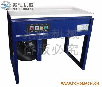 本打包機為半自動捆扎機,在插入包裝帶后能自動完成聚帶、熱合、切斷、出帶的捆扎過程,且能自動停機。