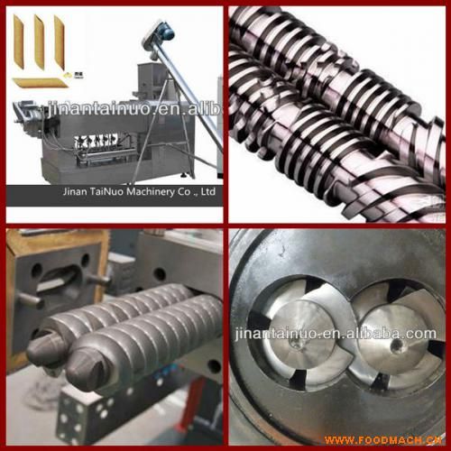 濟南泰諾機械有限公司研制的拉絲蛋白生產線以低溫豆粕、谷原粉、分離蛋白、淀粉為主要原料,經粉磨、攪拌、調質、高溫、高壓...