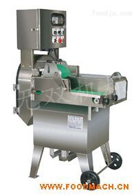 切菜機(jī)將根莖類(lèi)切成厚、薄片、絲條、丁等外形。葉菜類(lèi)之輸送帶轉(zhuǎn)刀速度采用變頻器控制,獨(dú)立控制。
