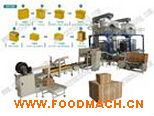裝箱線流程:自動(dòng)包裝→重量選別或金探→匯流整形線→自動(dòng)開箱機(jī)→自動(dòng)裝箱機(jī)→振動(dòng)壓平→全自動(dòng)封箱機(jī)→自動(dòng)捆扎機(jī)→暫存段