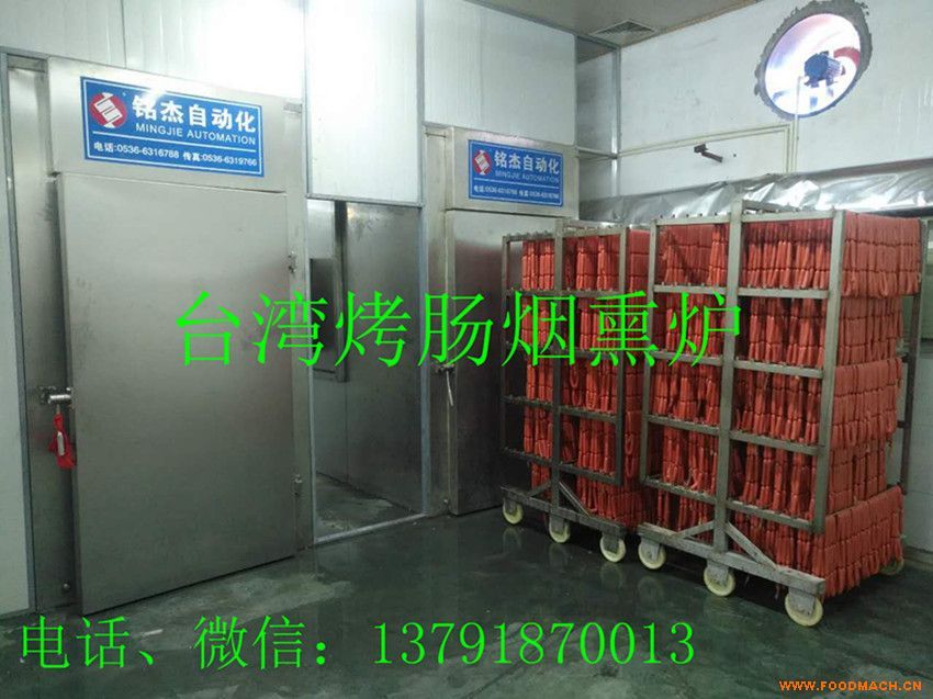銘杰全自動(dòng)臺(tái)灣烤腸煙熏爐,生產(chǎn)效率高,節(jié)約能源,深受加工臺(tái)灣烤腸用戶的信賴。