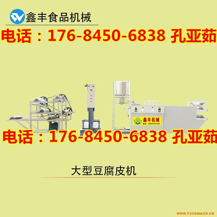 生產(chǎn)的豆腐皮機(jī)具有攪拌潑腦、傳送折疊、壓制卷布、自動(dòng)壓榨、自動(dòng)剝皮等流水作業(yè)功能,使用220伏或380伏電源,占地面積少,...