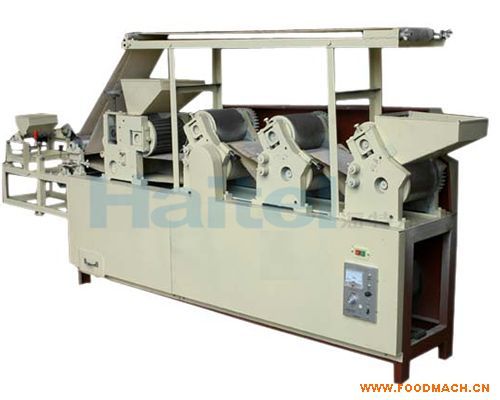 把拌好的面粉放入本機(jī),經(jīng)三道軋輥壓皮,再經(jīng)輥切模具一次成型。即可成為餅干生坯,經(jīng)烘烤做成各種餅干、薄餅干等。