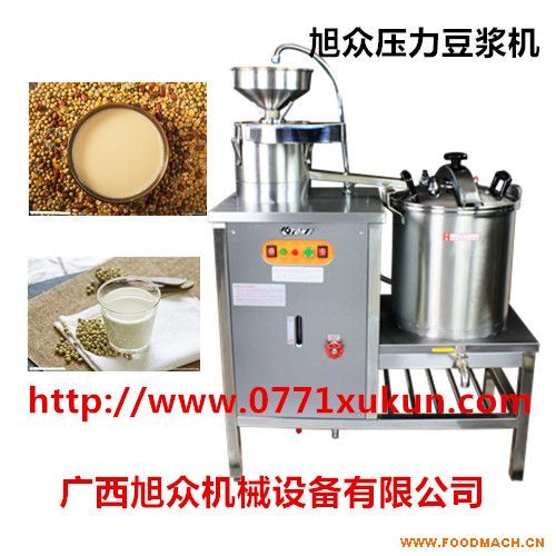 將浸泡好的黃豆由磨漿機(jī)進(jìn)行漿渣分離,分離后的豆?jié){在煮漿內(nèi)由豆奶機(jī)蒸汽包產(chǎn)生的蒸汽進(jìn)行高溫去腥、均質(zhì)、乳化,從而制作出新鮮的豆奶原漿。