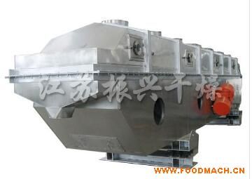 物料自進料進口進入機內(nèi),在振動力作用下,物料沿水平面流化床拋擲,向前連續(xù)運動,熱風(fēng)向上穿過流化床同濕物料換熱后,濕空氣經(jīng)旋風(fēng)分離器除塵后由排風(fēng)1:3排出.干燥物料由排料進口排出。