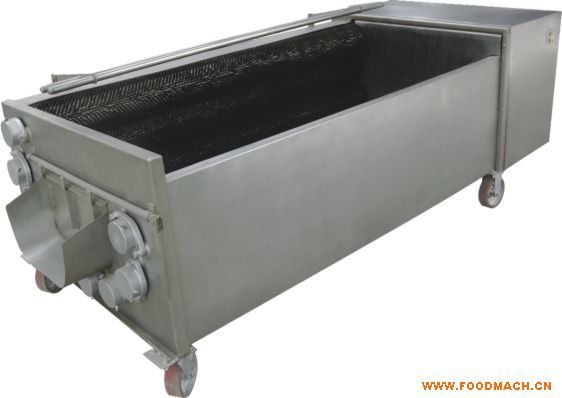 設(shè)備工作原理是利用毛輥的轉(zhuǎn)動(dòng)來(lái)去掉附著在生姜等蔬菜上的泥土(用毛輥絲較硬的毛輥可直接去皮),設(shè)備上部設(shè)有噴淋水管,可對(duì)物料進(jìn)行噴淋沖洗。每隔一定時(shí)間,打開設(shè)備端部出料口,物料排除設(shè)備。
