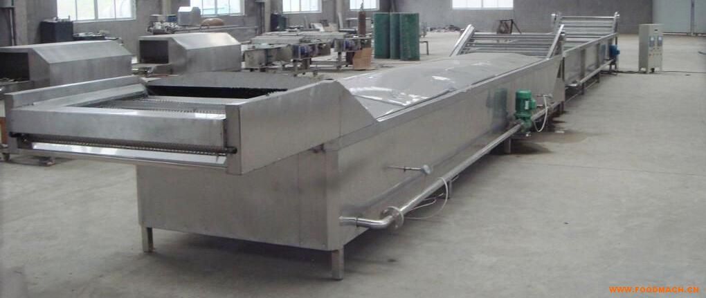 工作原理:產(chǎn)品可在可調(diào)速的不銹鋼網(wǎng)帶上,在傳送帶的作用下按序進(jìn)人殺青漂燙蒸煮后,再由傳送帶送入冷卻箱體內(nèi)均勻冷卻護(hù)色,從而達(dá)到產(chǎn)品殺青漂燙蒸煮的效果。該系列設(shè)備連續(xù)運(yùn)轉(zhuǎn),已殺青漂燙蒸煮好的產(chǎn)品被源源不斷送人下一生產(chǎn)工序。