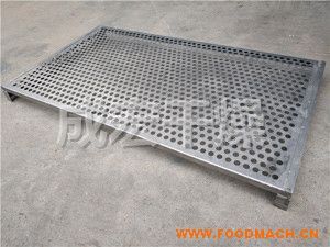 標(biāo)準(zhǔn)盤(pán)外形尺寸為:640*460*45mm,為模具一次沖壓成型,烘盤(pán)常規(guī)厚度0.5mm,還有加厚型0.6mm、0.7mm、0.8mm、0.9mm、1.0mm。另外為了增加透氣性可沖孔,孔徑1-10mm供用戶選擇,制作工藝有卷邊盤(pán),直邊盤(pán),新版GMP卷直邊。
