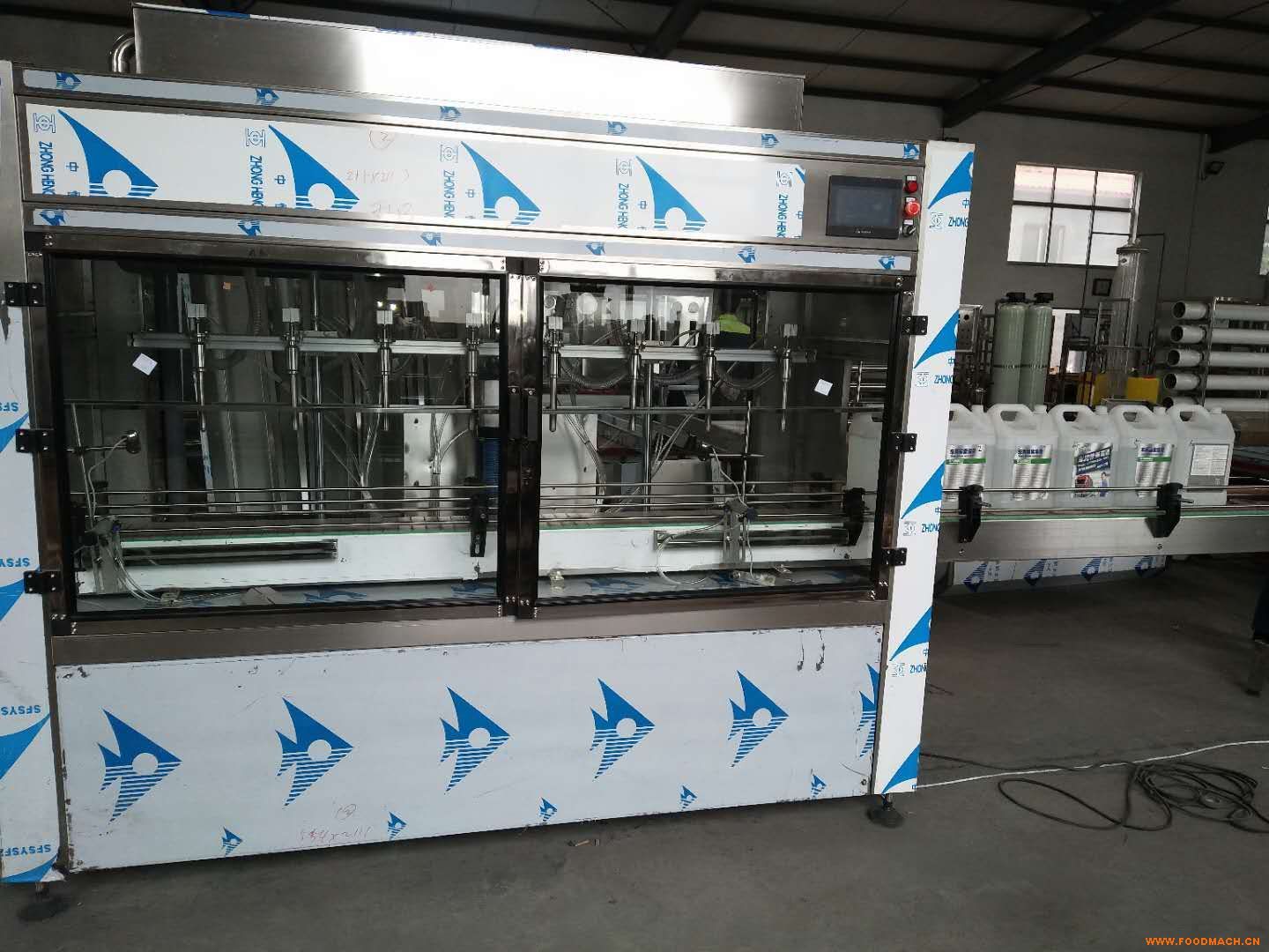 車用尿素水廠灌裝設(shè)備主機(jī)外觀為長方形,底部裝有可調(diào)節(jié)支腳,用于調(diào)整機(jī)器高度及水平。機(jī)內(nèi)設(shè)有灌裝頭,及封蓋系統(tǒng)。輸送鏈上部裝有擋瓶氣缸機(jī)數(shù)量與氣缸相等的光電傳感裝置。機(jī)器下半部裝有控制電箱。機(jī)器工作分為三個階段,*階段為進(jìn)瓶階段,當(dāng)機(jī)器啟動后,機(jī)器出瓶的入口關(guān)閉,用于擋住灌裝瓶讓待灌裝瓶保持在待灌裝區(qū)域,空瓶由空瓶入口處進(jìn)入,進(jìn)入口的光電則開始計(jì)數(shù),當(dāng)光電計(jì)到與灌裝頭相同數(shù)量的瓶子后。防滴漏脫水槽部分氣缸縮回,裝在空瓶入口處的擋瓶氣缸同時關(guān)閉,同時灌裝頭下發(fā)的輸送鏈條關(guān)閉。接著進(jìn)入到第二個階段灌裝階段,開始灌裝,灌裝頭下潛至瓶口以下,然后灌裝頭打開開始灌裝。當(dāng)灌裝至設(shè)定液位后,灌裝頭關(guān)閉,并上升,灌裝階段結(jié)束。*后一個階段為出瓶階段。灌裝設(shè)備主要分為單頭灌裝機(jī),雙頭灌裝機(jī)等。大家可根據(jù)自己的實(shí)際需求選購合適的。