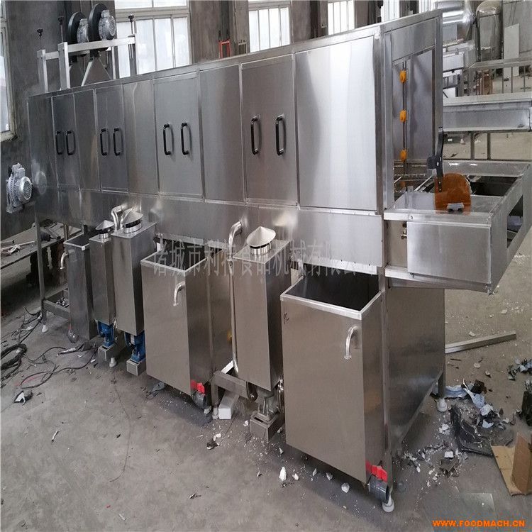 我公司生產(chǎn)的洗箱機(jī) 自動(dòng)洗箱機(jī) 周轉(zhuǎn)箱洗箱機(jī)是專門(mén)針對(duì)箱子的清洗而設(shè)計(jì)制作的一款新型清洗設(shè)備,原理是機(jī)器打開(kāi)后由輸送機(jī)或人工送料到清洗機(jī)傳動(dòng)軌道,先用熱堿水噴淋,然后熱溫水高壓噴淋,再用自來(lái)水循環(huán)噴淋,具有獨(dú)立循環(huán)水箱,過(guò)濾網(wǎng)可方便抽取除過(guò)濾物,清洗干凈,操作便捷。該設(shè)備主要針對(duì)小型食品加工廠,可以清洗周轉(zhuǎn)箱、食品盤(pán)等,節(jié)省大量的人力,提高工作效率,減少勞動(dòng)強(qiáng)度。