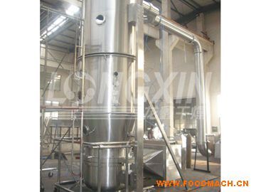 物料粉末粒子,在原料容器(流化床)中呈沸騰流化狀態(tài),受到經(jīng)過凈化后的加熱空氣預(yù)熱和混合,將粘合劑溶液霧化噴入,使若干粒子聚集成含有粘合劑的團(tuán)粒,由于熱空氣對(duì)物料的不斷干燥,使團(tuán)粒中水份蒸發(fā),粘合劑凝固,此過程不斷重復(fù)進(jìn)行,形成理想的、均勻的多微孔球狀顆粒。
