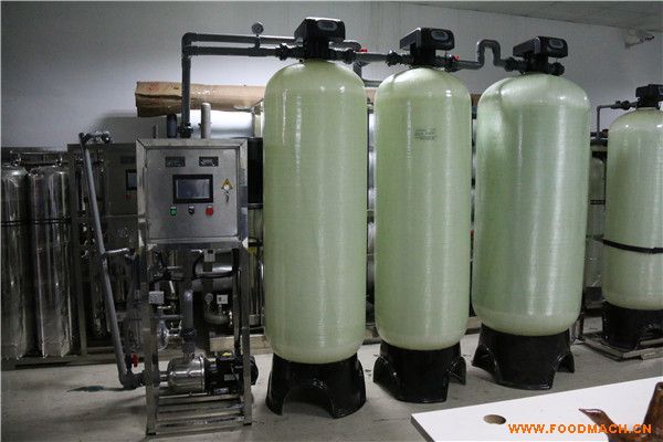 原水→原水加壓泵→多介質(zhì)過濾器→活性炭過濾器→軟水器→精密過濾器→一級反滲透機→中間水箱→中間水泵→edi系統(tǒng)→微孔過濾器→用水點