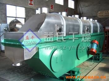 物科自進(jìn)料口進(jìn)入機(jī)內(nèi),在振動力作用下,物科沿水平方向拋擲向前連續(xù)運(yùn)動,熱風(fēng)向上穿過流化床同濕物料換熱后,濕空氣經(jīng)旋風(fēng)分離器除塵后由排風(fēng)口排出;干燥物料由排料口排出。