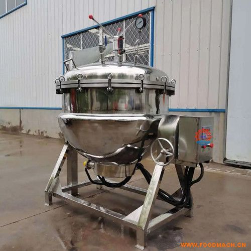 煮粽子設(shè)備設(shè)備主要特點(diǎn):1.利用盤管循環(huán)蒸汽間接加熱,使鍋內(nèi)溫度更均勻。2.蒸煮出料時(shí)鍋內(nèi)湯汁不需要排出,可連續(xù)使用,節(jié)約了能源。3.鍋體外部用保溫層保溫,避免鍋內(nèi)熱量散失及人員操作時(shí)高溫。4.鍋門結(jié)構(gòu)改過(guò)去法蘭螺栓連接固定式為液壓快開(kāi)式。高溫高壓粽子蒸煮鍋并安裝了光電限位、聯(lián)鎖、互鎖功能。5.鍋門為充氣密封,在鍋上限水位安裝視鏡便于及時(shí)增補(bǔ)湯汁。6.多臺(tái)設(shè)備共用一臺(tái)液壓站,操作時(shí)可單一操作,節(jié)省空間降低成本。
