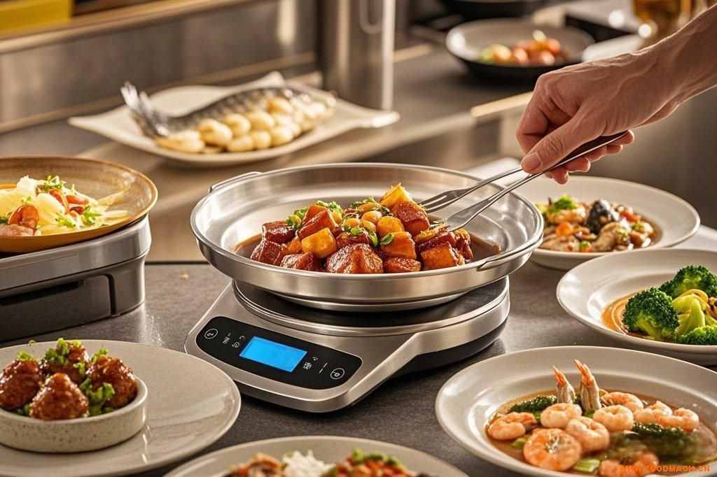 2.自動(dòng)稱重:顧客選好菜品,將其放在餐盤(pán)或托盤(pán)內(nèi),設(shè)備自動(dòng)計(jì)算出所取菜品的重量。