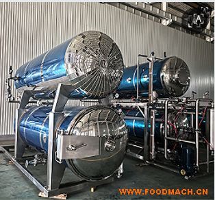 3、開啟平衡裝置,熱水罐內(nèi)的殺菌工藝水通過水泵抽到殺菌釜內(nèi),到達(dá)工藝設(shè)定液位;