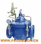 變小,則導(dǎo)閥開度變小,主閥控制室壓力上升,推動(dòng)主閥開度減小而使主閥壓差增大。這種負(fù)反饋?zhàn)饔檬怪鏖y進(jìn)出口間壓差穩(wěn)定在社頂值上。設(shè)定針閥開度和導(dǎo)閥彈簧壓力可設(shè)定主閥進(jìn)出口間壓差。本產(chǎn)品利用水力自力控制,不需要其它裝置和