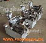按照餃子的成形特點(diǎn),采用雙控雙向同步定量供料原理,生產(chǎn)時(shí)不需另制面帶,只需將面團(tuán)與餡料放入指定入口,開機(jī)即可自動(dòng)生產(chǎn)出餃子。