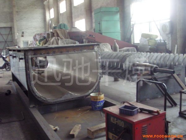 概述 槳葉式干燥器是一種在設(shè)備內(nèi)部設(shè)置攪拌槳.使?jié)裎锪显跇~的攪動(dòng)下.與熱載體以及熱表面充分接觸.從而達(dá)到干燥目的的低速攪拌干燥器。結(jié)構(gòu)形式一般為臥式.雙軸或四軸。 槳葉式干燥器分為熱風(fēng)式和傳導(dǎo)式。熱風(fēng)式即通過熱載體(如熱空氣)與被干燥的物料相互接觸并進(jìn)行干燥.在傳導(dǎo)式中熱載體并不與被干燥的物料直接接觸.而是熱表面與物料相互接觸。傳導(dǎo)式的優(yōu)點(diǎn)是物料不易被污染.排氣量。疅嵝矢撸w積相對(duì)小.有利于節(jié)約能源及防止空氣污染;