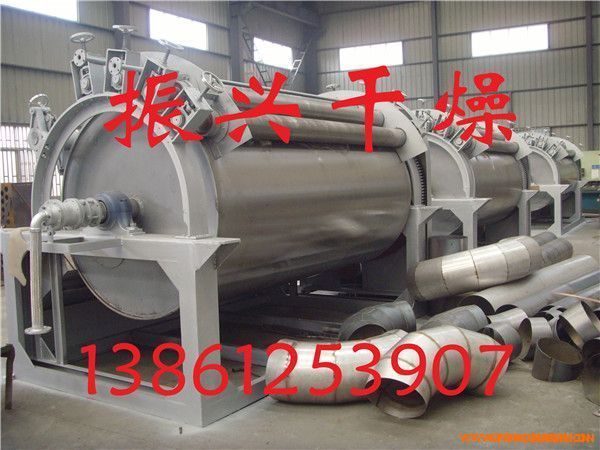 滾筒刮板干燥機是一種內(nèi)加熱傳導(dǎo)型轉(zhuǎn)動連續(xù)干燥設(shè)備。旋轉(zhuǎn)的滾筒通過其下部料槽,粘附著一厚度的料膜,熱量通過管道輸送至滾筒內(nèi)壁,傳導(dǎo)到滾筒外壁,再傳導(dǎo)給料膜,使料膜中的濕度得到蒸發(fā)、脫濕、使含濕分的物料得到干燥。干燥好的物料被裝置在滾筒表面的刮刀鏟離滾筒,到置于刮刀下方的螺旋輸送器,通過螺旋輸送器將干物料集中、包裝。