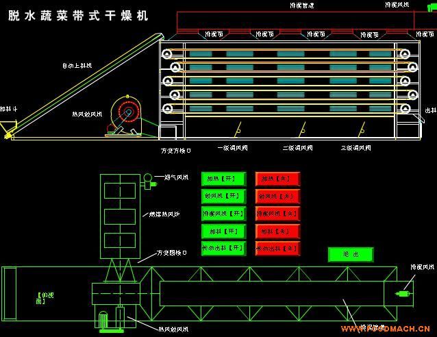 干燥面積、風(fēng)壓、風(fēng)量、干燥溫度、網(wǎng)帶盍速度均可調(diào)節(jié),以適應(yīng)蔬菜的特性及品質(zhì)要求。