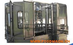 考慮到灌裝、封蓋的凈化效果,本機(jī)采用分體式結(jié)構(gòu),主機(jī)分為四大部分,即自動(dòng)上桶部分、洗桶機(jī)部分、灌裝機(jī)部分、封蓋部分。