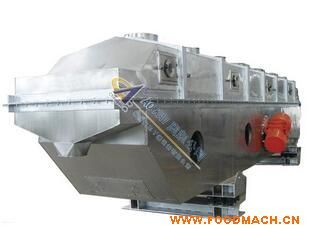 物料自進(jìn)料進(jìn)口進(jìn)入機(jī)內(nèi),在振動(dòng)力作用下,物料沿水平面流化床拋擲,向前連續(xù)運(yùn)動(dòng),熱風(fēng)向上穿過流化床同濕物料換熱后,濕空氣經(jīng)旋風(fēng)分離器除塵后由排風(fēng)1:3排出.干燥物料由排料進(jìn)口排出。