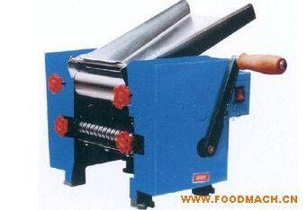 4、軋面:先拆下切面刀,調(diào)節(jié)軋面輥二頭的調(diào)節(jié)器,將兩面輥間隙調(diào)為2.5-3mm,將插頭插入200V電源的插座內(nèi),按下機器上的開關(guān),把和好的面片放入面斗上,引入軋面輥之間,反復(fù)輥制4-5次,*后調(diào)節(jié)面輥間隙1.5mm,復(fù)壓一次。