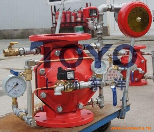 手動控制。發(fā)生火災(zāi)時現(xiàn)場手動打開手動球閥開啟主閥滅火。主閥開啟后,壓力進(jìn)入壓力開關(guān)和水力警鈴,水力警鈴發(fā)出聲音報警,壓力開關(guān)向控制中心發(fā)出信號開啟消防泵。