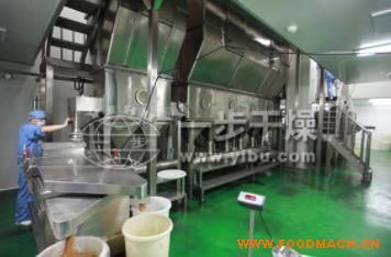 供應(yīng)生產(chǎn)中藥沖劑臥式沸騰干燥機(jī),經(jīng)過幾十秒至幾分鐘沸騰干燥,自動(dòng)從床體另一頭流出。