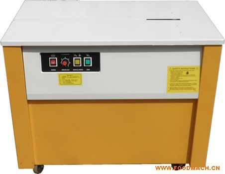 高臺型半自動打包機適用于各種大小貨物的打包,如書刊雜志,紙箱,郵政包裹、地板磚、汽車配件等物品的的捆扎打包。