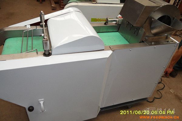 該設(shè)備主要有機(jī)架、輸送帶、壓菜帶、切片機(jī)構(gòu)、調(diào)速箱或塔輪調(diào)速機(jī)構(gòu)組成。
