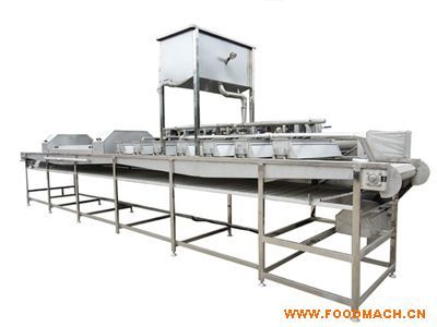 用于果蔬加工過程中開瓣后,火堿蛻皮處理。外形尺寸:9000X1200X2500(㎜)配電功率:2.75kw