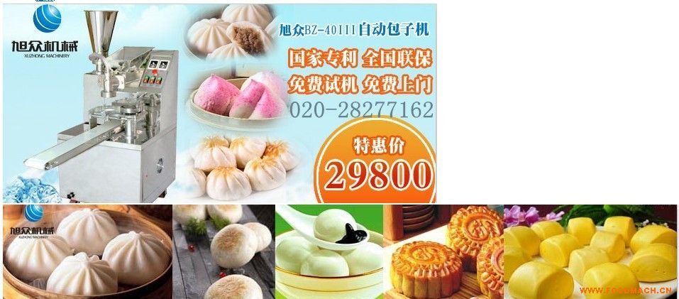 旭眾BZ-40III型包子機(jī)生產(chǎn)品種多樣化,可生產(chǎn)各種不同餡料的包子、各式包餡食品,如豆沙包、南瓜餅、肉包、小籠包等,南瓜餅、...