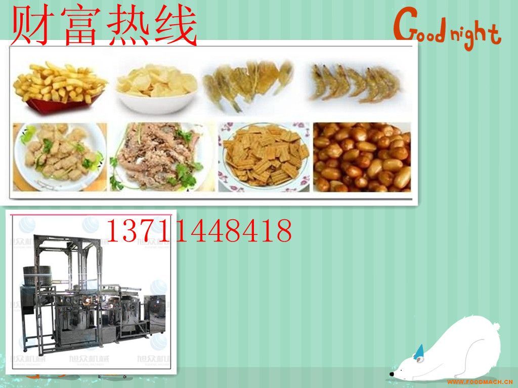 主營產(chǎn)品:面制品加工設(shè)備,油炸系列設(shè)備,肉制品加工設(shè)備,蔬菜加工設(shè)備,磨漿榨汁設(shè)備,