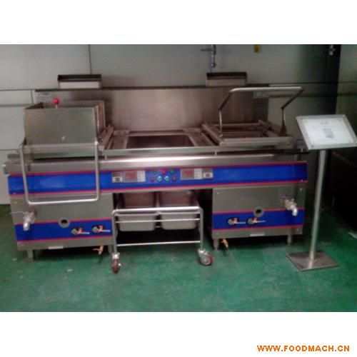 中央廚房設(shè)備-連續(xù)式自動(dòng)油炸機(jī)(Y-4000)先放先出,加熱時(shí)間,濕度可設(shè)定,炸出的食品均勻一致.