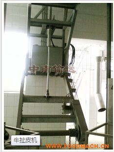 用途簡介:本機適用于預(yù)剝后的毛牛進(jìn)行扯皮所用:采用液壓升降原理,由液壓站、油缸、主機、卷皮滾筒組成。配套2個升降工作臺...