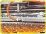 巧克力澆注生產(chǎn)線實(shí)現(xiàn)不停模具連續(xù)式澆注生產(chǎn)。每分鐘能澆注26次,餅干可以做夾芯巧克力澆注,多色巧克力澆注,谷物巧克力澆注。