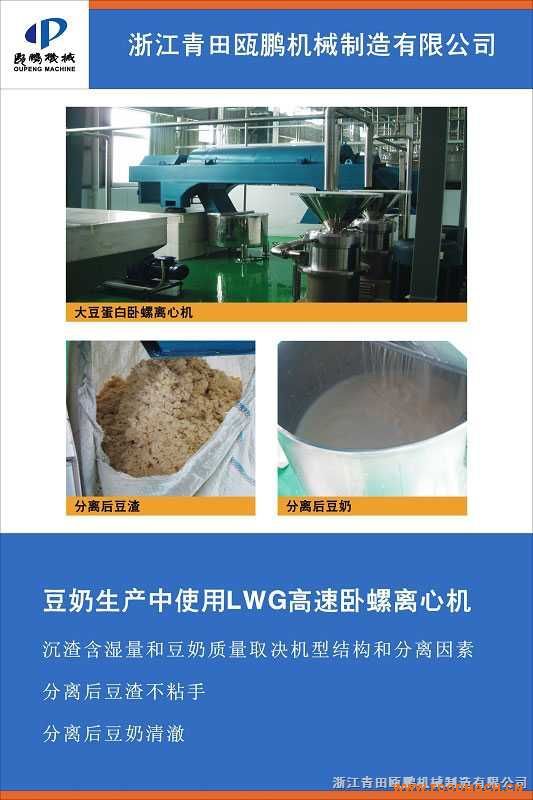 豆奶高速離心機(jī):沉渣含濕和豆奶質(zhì)量取決機(jī)型結(jié)構(gòu)和分離因素,分離后豆渣不粘手,分離后豆奶清澈臥螺沉降離心機(jī)是利用離心沉...
