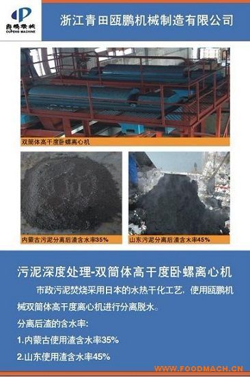 市政污泥焚燒采用日本的水熱干化工藝,使用甌鵬機(jī)械制造的污泥深度處理-雙筒體高干度臥螺離心脫水機(jī)進(jìn)行分離脫水分離后渣的含...