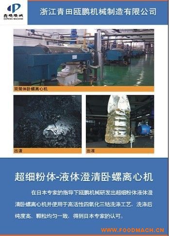 在日本*的指導(dǎo)下甌鵬機(jī)械研發(fā)出超細(xì)粉體液體澄清臥螺離心機(jī)并使用于高活性四氧化三鈷洗滌工藝,洗滌后純度高、顆粒均勻一致,...