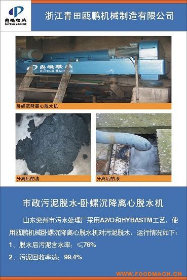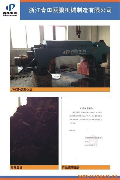 Lwf254臥螺沉降離心機(jī)用于寧波杰順生物科技公司我公司采用“臥螺離心機(jī)LW254型"系由浙江青田甌鵬機(jī)械制造有限公司生產(chǎn),用于...