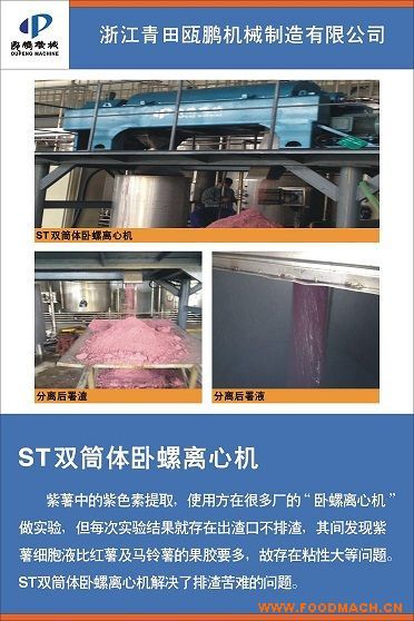 紫薯中的紫色素提取,使用方在很多廠的“臥螺離心機(jī)"做實(shí)驗(yàn),但每次實(shí)驗(yàn)結(jié)果就存在出渣口不排渣,其間發(fā)現(xiàn)紫薯細(xì)胞液比紅薯及...