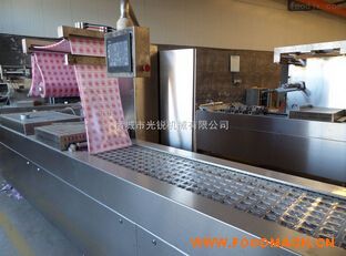 拉伸膜全自動(dòng)真空包裝機(jī)須使用成形模具,先把薄膜加熱,而后再用成形模具沖成容器的形狀,然后將包裝物裝入成型了的下膜腔中...