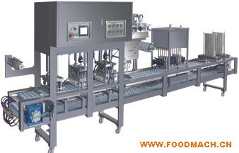 自動塑杯灌裝封蓋機是用于塑料碗、杯、盒的自動封蓋,其特點是模板上加有彈性硅膠,并采用二次熱封封口,保證封口的效果。
