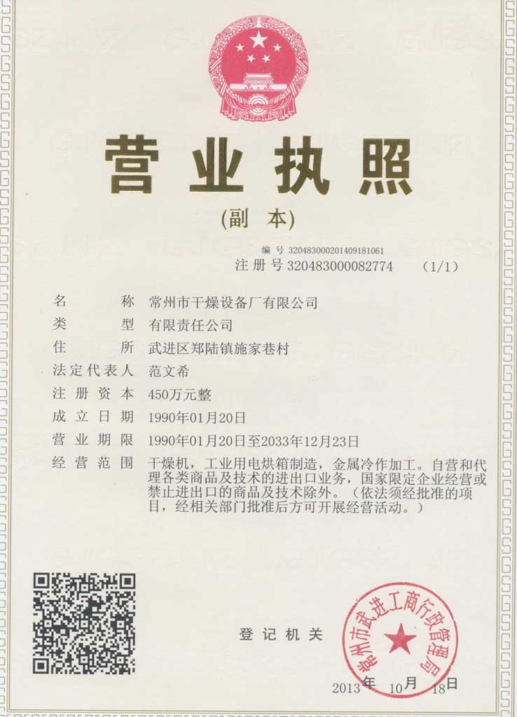 發(fā)證機(jī)構(gòu):常州市武進(jìn)工商行政管理局,生效日期:2013/10/18