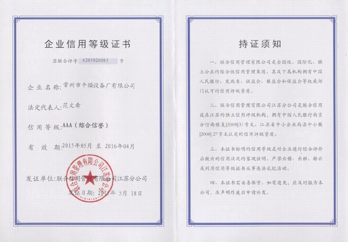 您現(xiàn)在的位置:常州市干燥設(shè)備廠有限公司 >> 企業(yè)榮譽(yù)