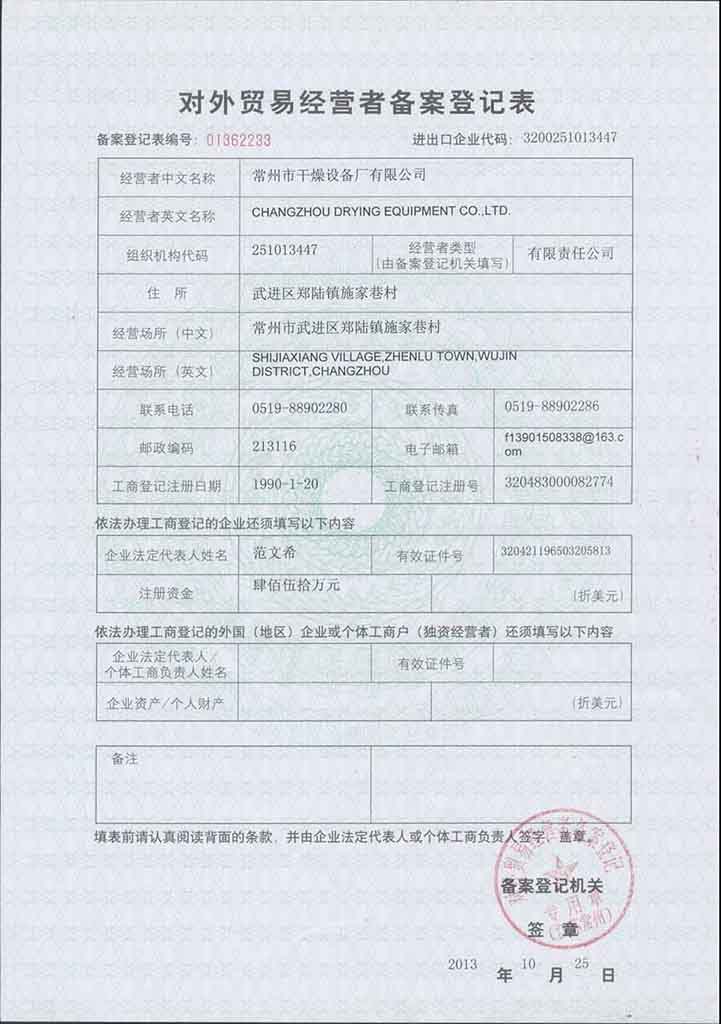 發(fā)證機(jī)構(gòu):常州市對(duì)外貿(mào)易經(jīng)濟(jì)合作局,生效日期:2013/10/25
