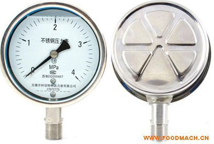 不銹鋼記憶壓力表的特點是可以在無人的情況下,如實記錄下測量現(xiàn)場所發(fā)生的*高壓力值。適用于食品機械及有高溫要求場合。